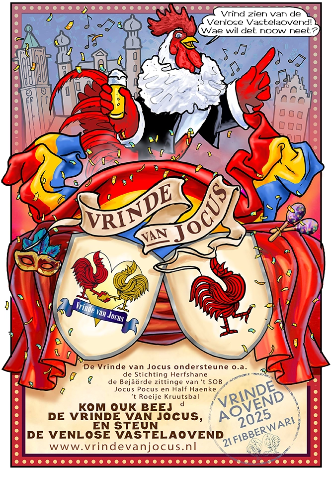 De Stichting Vrinde van Jocus is opgerich in maart 1997 beej gelaegeheid van ‘t 14 x 11 jäörig bestaon van Venloosch Vastelaoves Gezelschap Jocus en haet tot doel de Venloosche Vastelaovend in het algemein en de vereiniging Jocus in ’t biezonder financieel te ondersteune. Heej toe haet de stichting deilnemers die jäörliks ein vas bedraag voldoon en dao mei de stichting steune deze doele te verwezelikke. Daonaeve is de stichting eigenaer van ’t Jocus pand aan de Burgemeester Conraetzstraat 76. In dit pand hoes ’t umvangrieke archief van Jocus, staon de koetse, de Prinsewage en de Raodswage geparkeerd en waere alle decorstökke opgeborge. Daonaeve is dit pand ein maak-fabriek van creatieve leeje van Jocus. Ontwerpe en ’t make komme heej same um Jocus evenemente de unieke oetstraoling te gaeve mit eige decor.